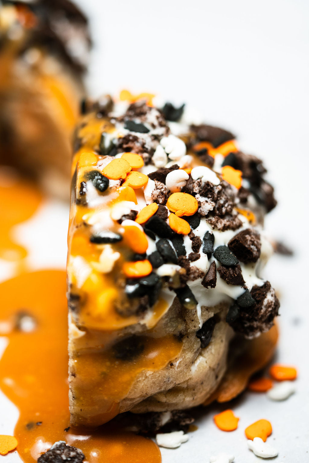 This October flavour features a Kookies and Kream based cookie dough loaded with white chocolate chips, semi-sweet chips, Oreos, and caramel bits, then Krammed with a salted caramel sauce, Hershey cookies and cream bar and an Oreo. It’s then topped with white chocolate, Oreos and Halloween sprinkles.