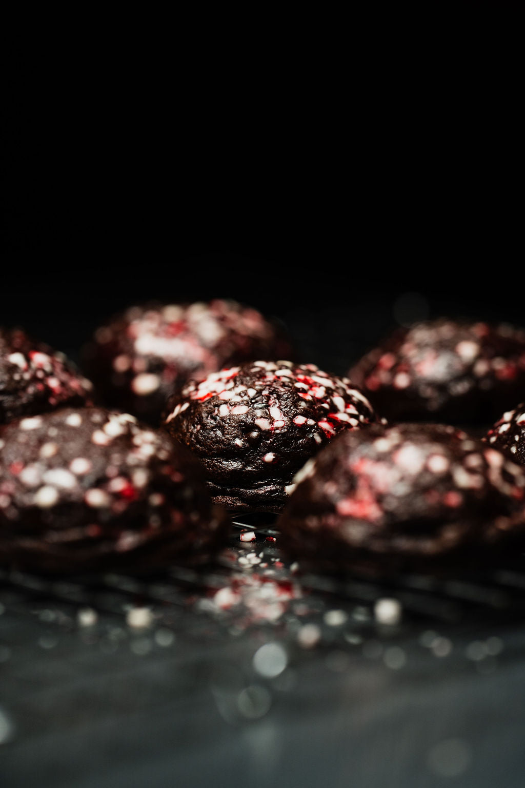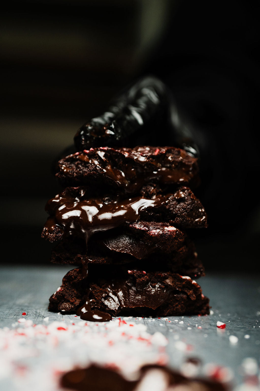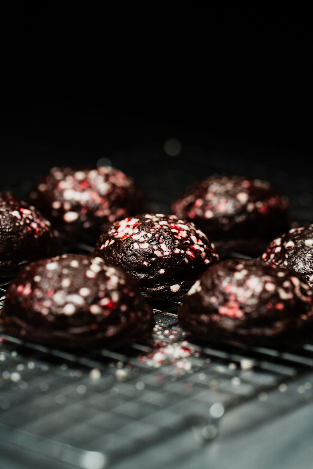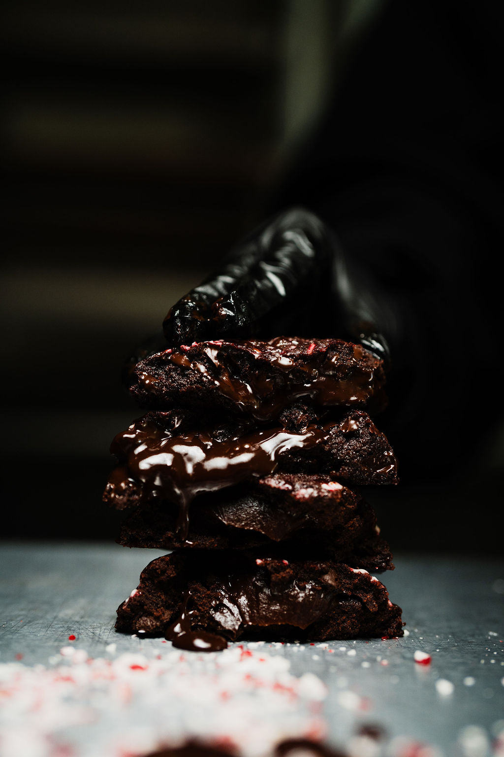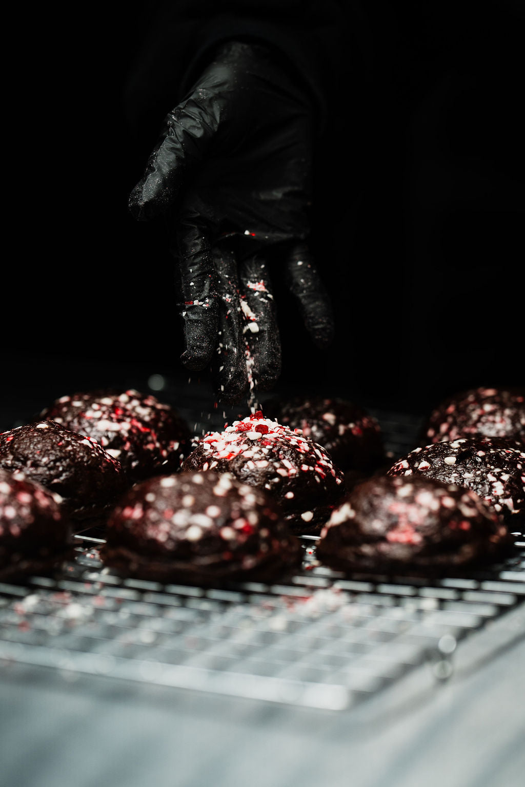 This December feature starts with a fudgey chocolate cookie dough, mixed with dark chocolate chips and Krammed with a peppermint chocolate ganache and topped with crushed candy cane pieces.