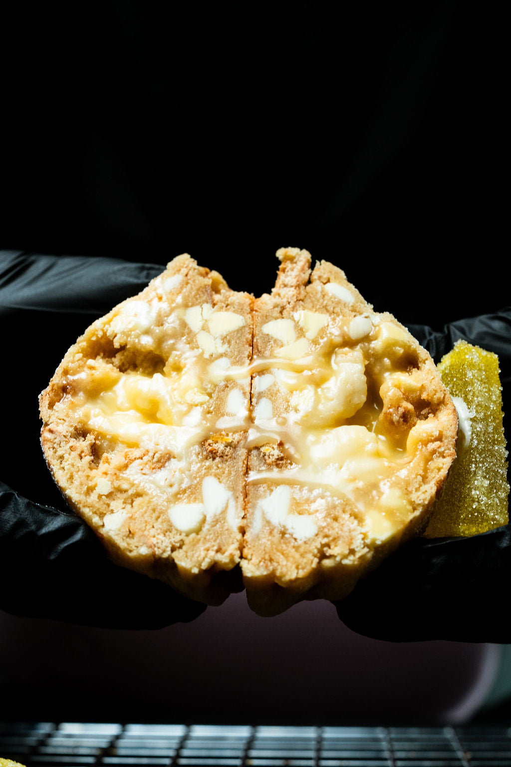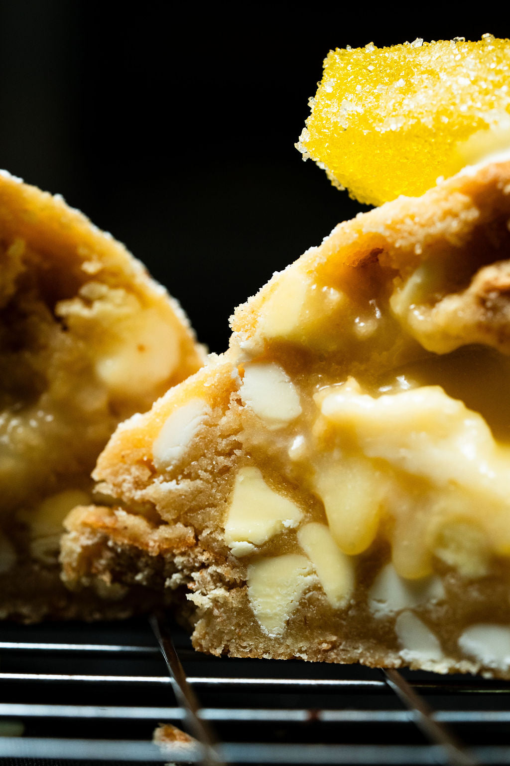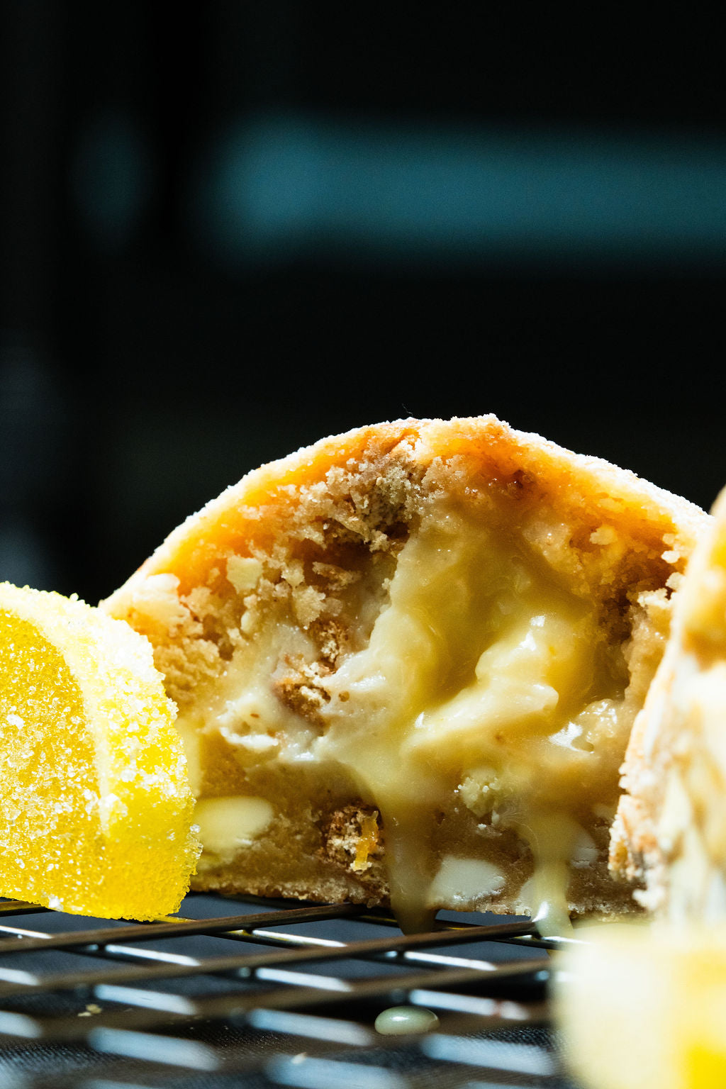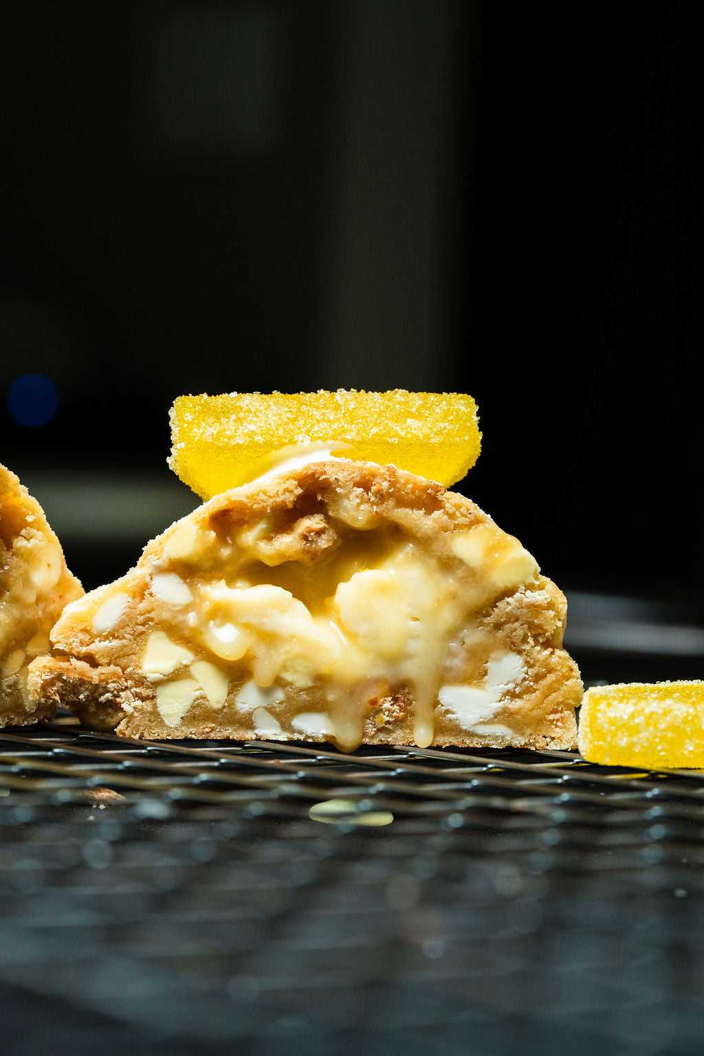 We finally did it with this one. Only took 6 years to perfect our lemon cookie and here it is. Featuring a lemon cookie dough, mixed with graham cracker chunks, white chocolate chips, and lemon chips, Krammed with a fresh lemon curd and a creamy smooth cheesecake, and then all dusted with icing sugar for that last and final touch.