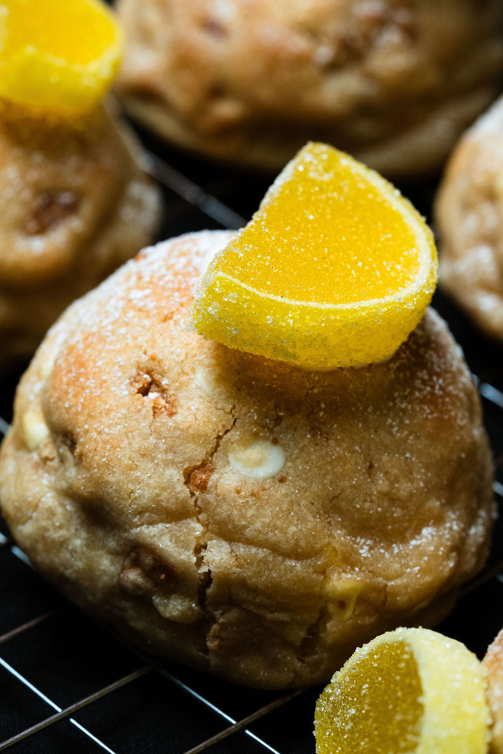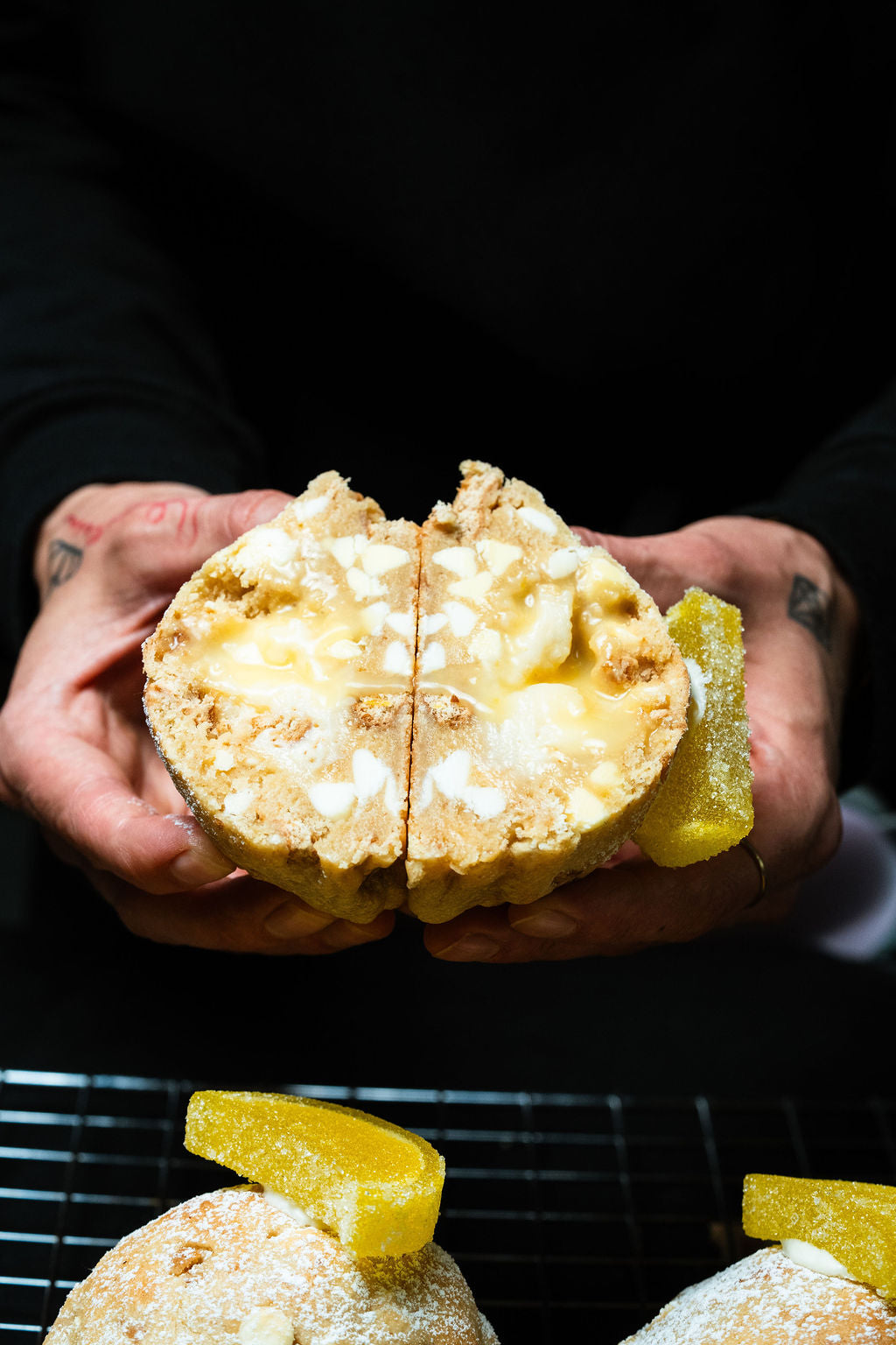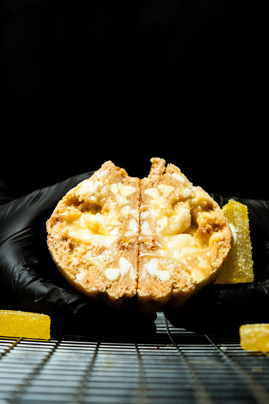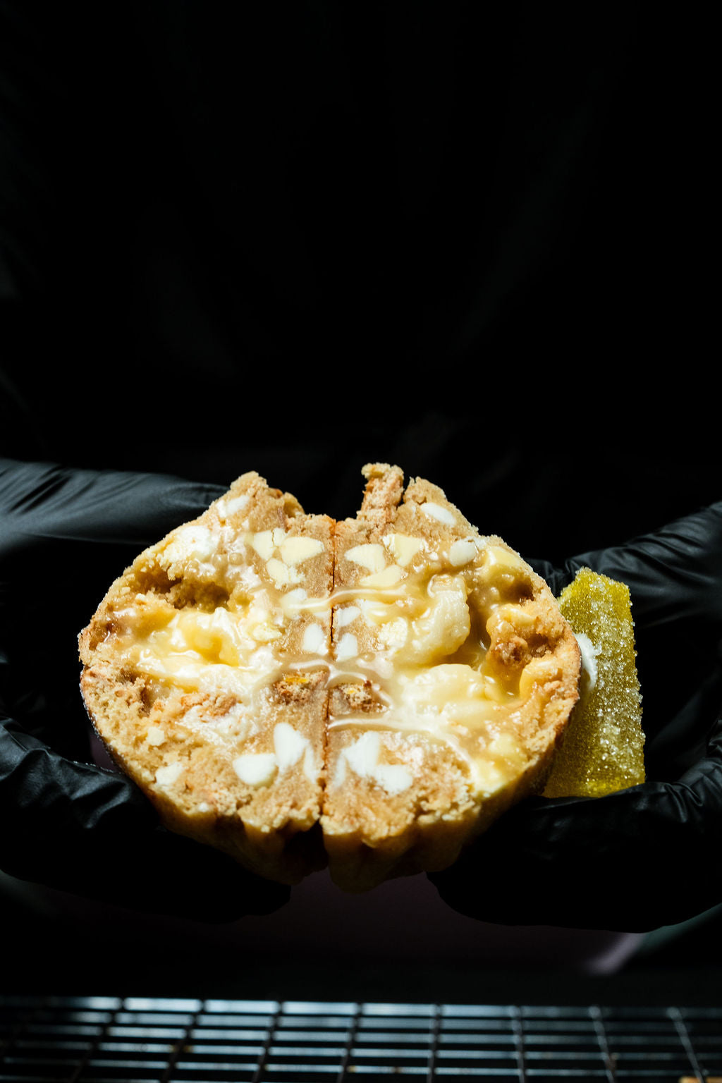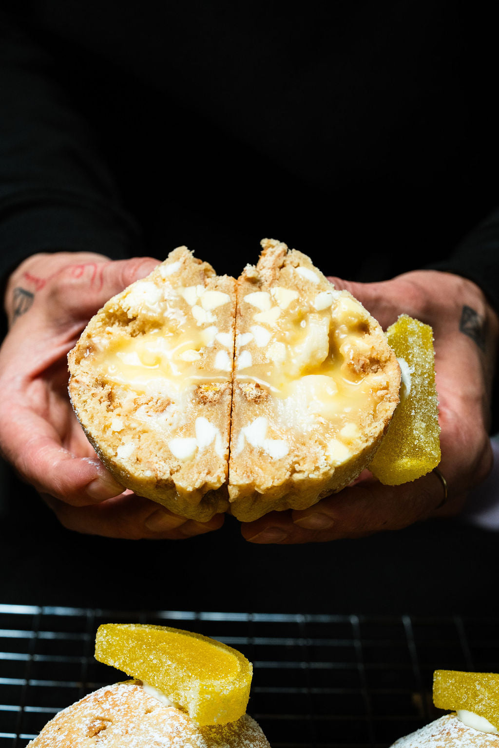 We finally did it with this one. Only took 6 years to perfect our lemon cookie and here it is. Featuring a lemon cookie dough, mixed with graham cracker chunks, white chocolate chips, and lemon chips, Krammed with a fresh lemon curd and a creamy smooth cheesecake, and then all dusted with icing sugar for that last and final touch.