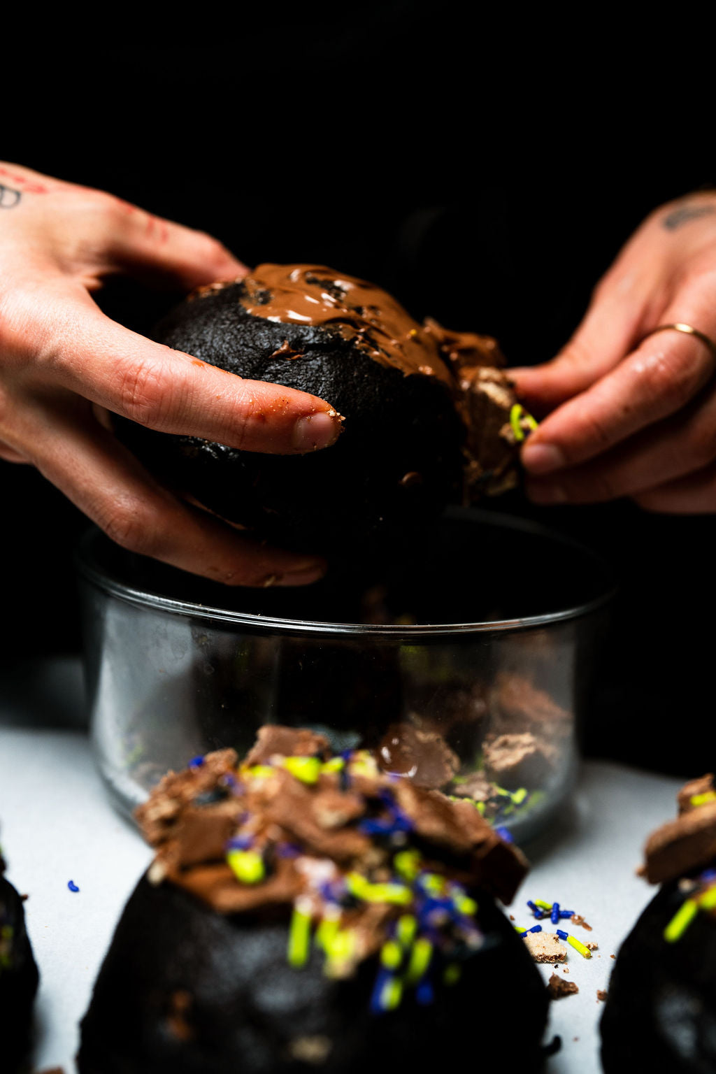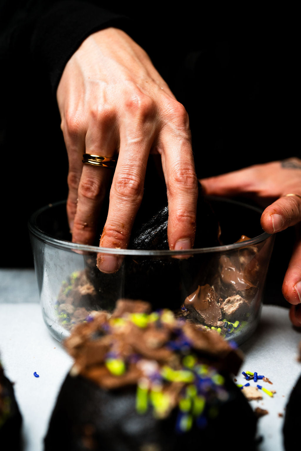 We use high quality chocolate without any "red flags" in every single scoop to make sure that we're a solid 10/10. Decorated perfectly messy just for your enjoyment because a hot mess is more fun!