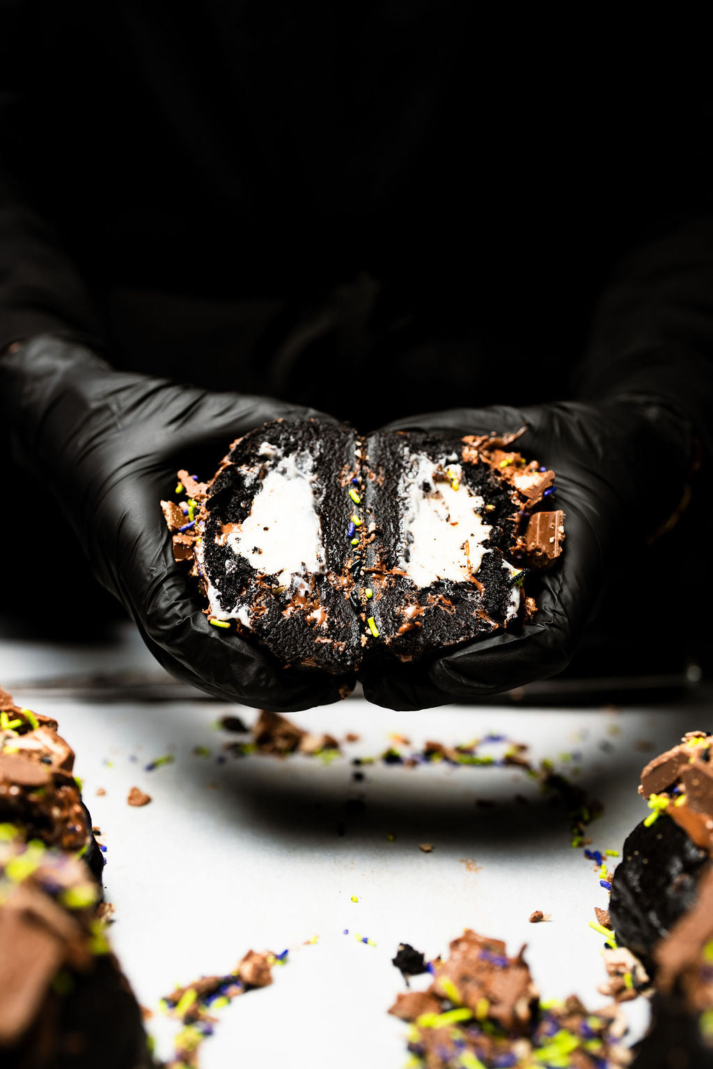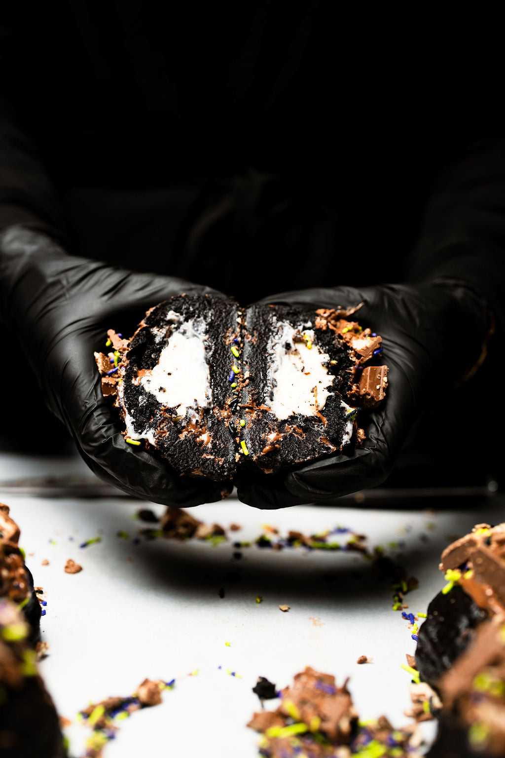 This Halloween flavour features a black cocoa cookie dough mixed with milk chocolate chips and Kit Kat bar chunks, Krammed with a cheesecake filling and then topped with more Kit Kat chunks and Halloween sprinkles.